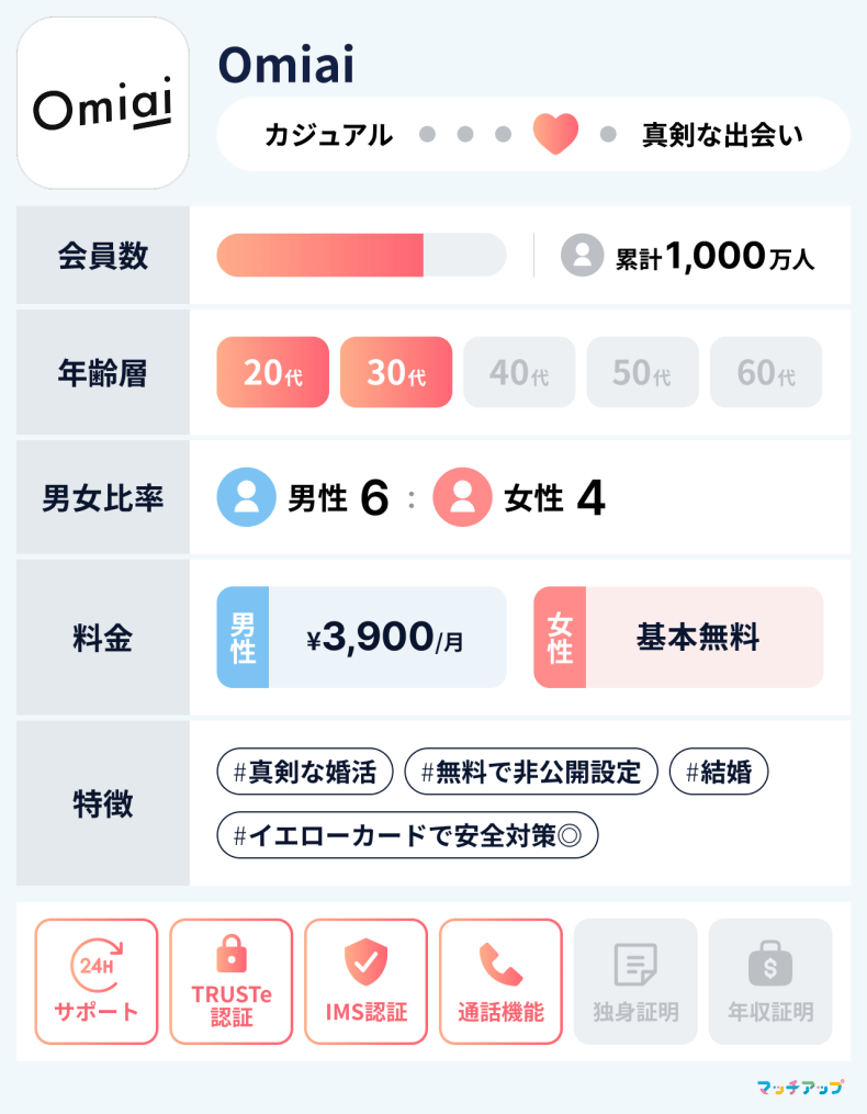 - 1.3 Omiai(おみあい)|真剣な会員が多く安全性が高い