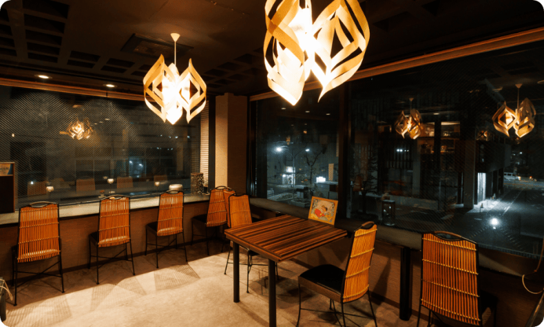 店内は間接照明が多く、やや暗めで大人な雰囲気です。