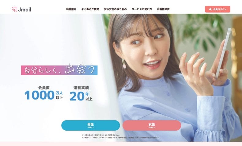 Jメールは2000年から運営されている、20年以上の歴史を持つ老舗の出会い系サイトです。